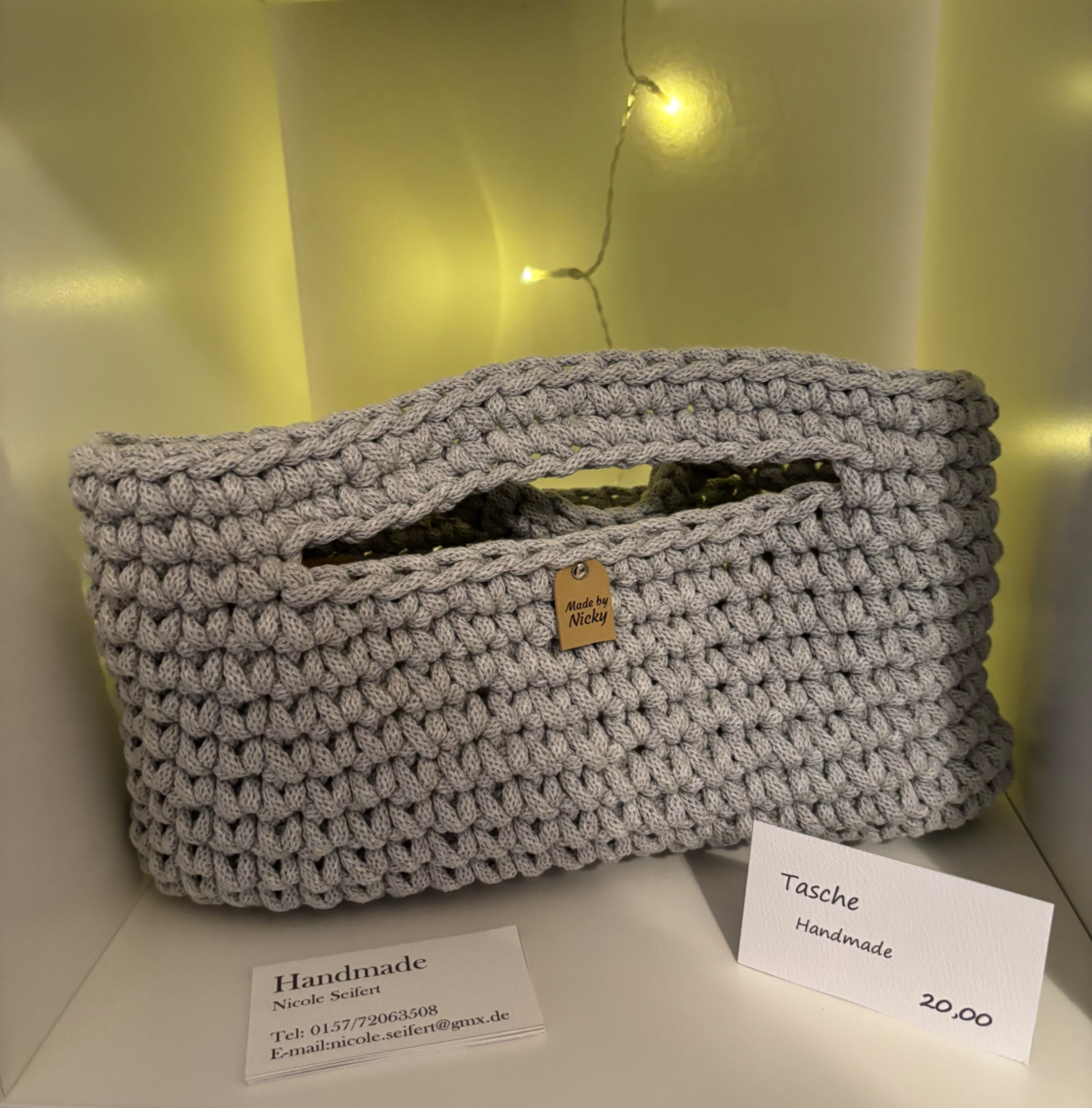 In Handarbeit gehäkelte Körbe, Taschen, Untersetzer, Babymützen uvm.